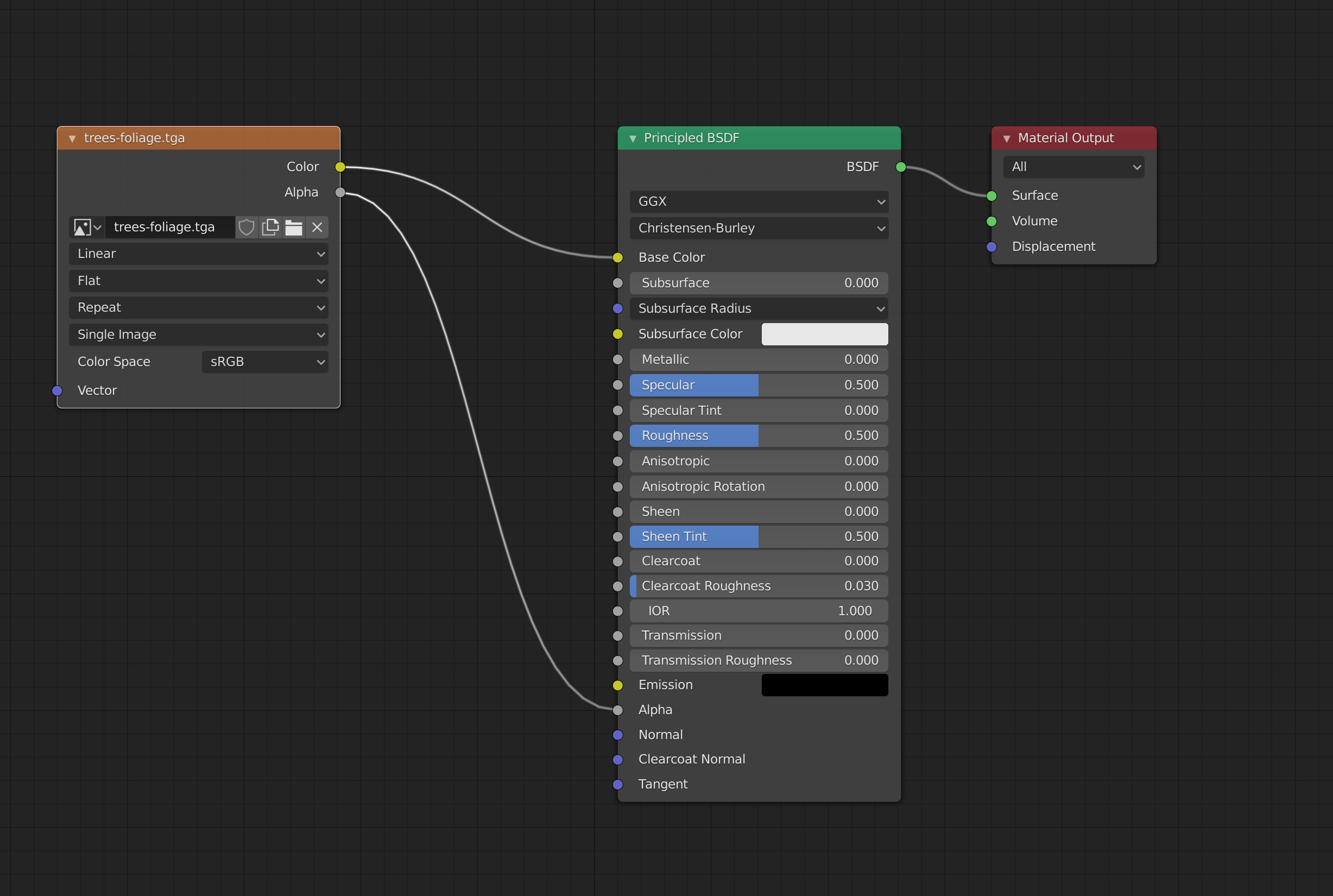 - Connect the alpha of the Texture Image to the factor of the Mix Shader.