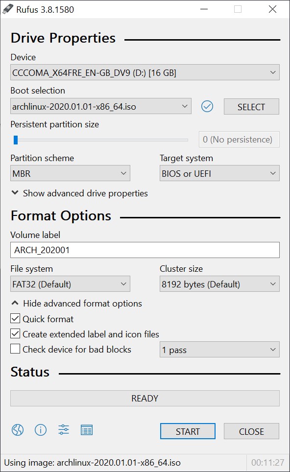 - Device: select your USB stick